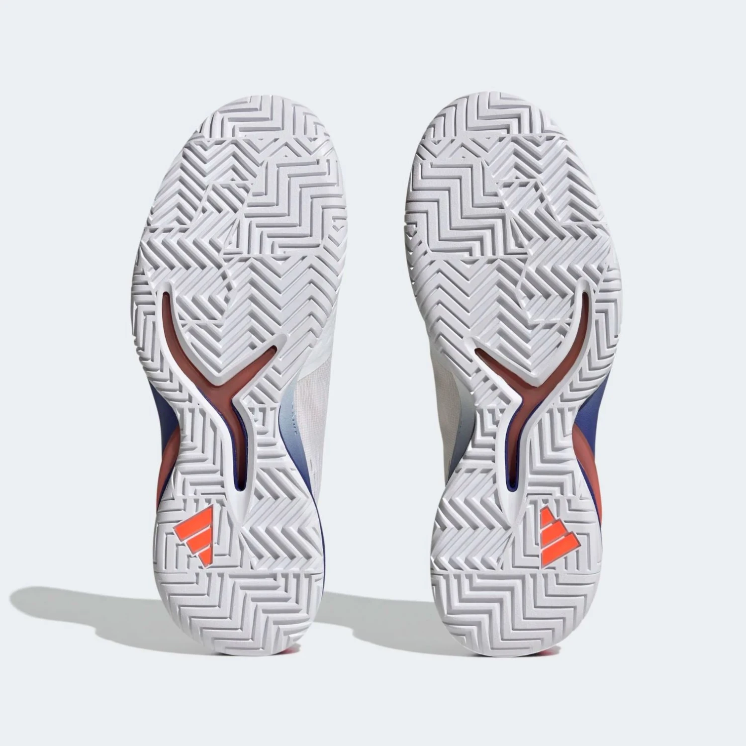 The outsole of the shoe has a herringbone pattern, as you know it from clay court tennis, however, the pattern on this model it is not made as deep, so the outsole of the shoe can best be characterized as an all court sole, suitable for different types of surfaces.