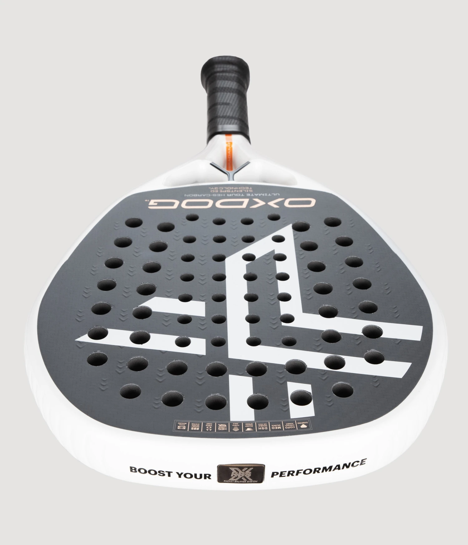 Oxdog’s Racket Balance System (RBS) includes two removable weights that allow you to change the weight and balance of the racket to suit your personal preferences. For example, this allows you to reduce the weight of the racket and make it even more maneuverable.