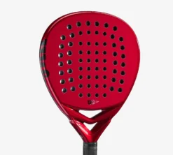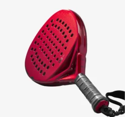 The design is crisp in red and black colors, and the racket weighs in at approximately 370 grams.